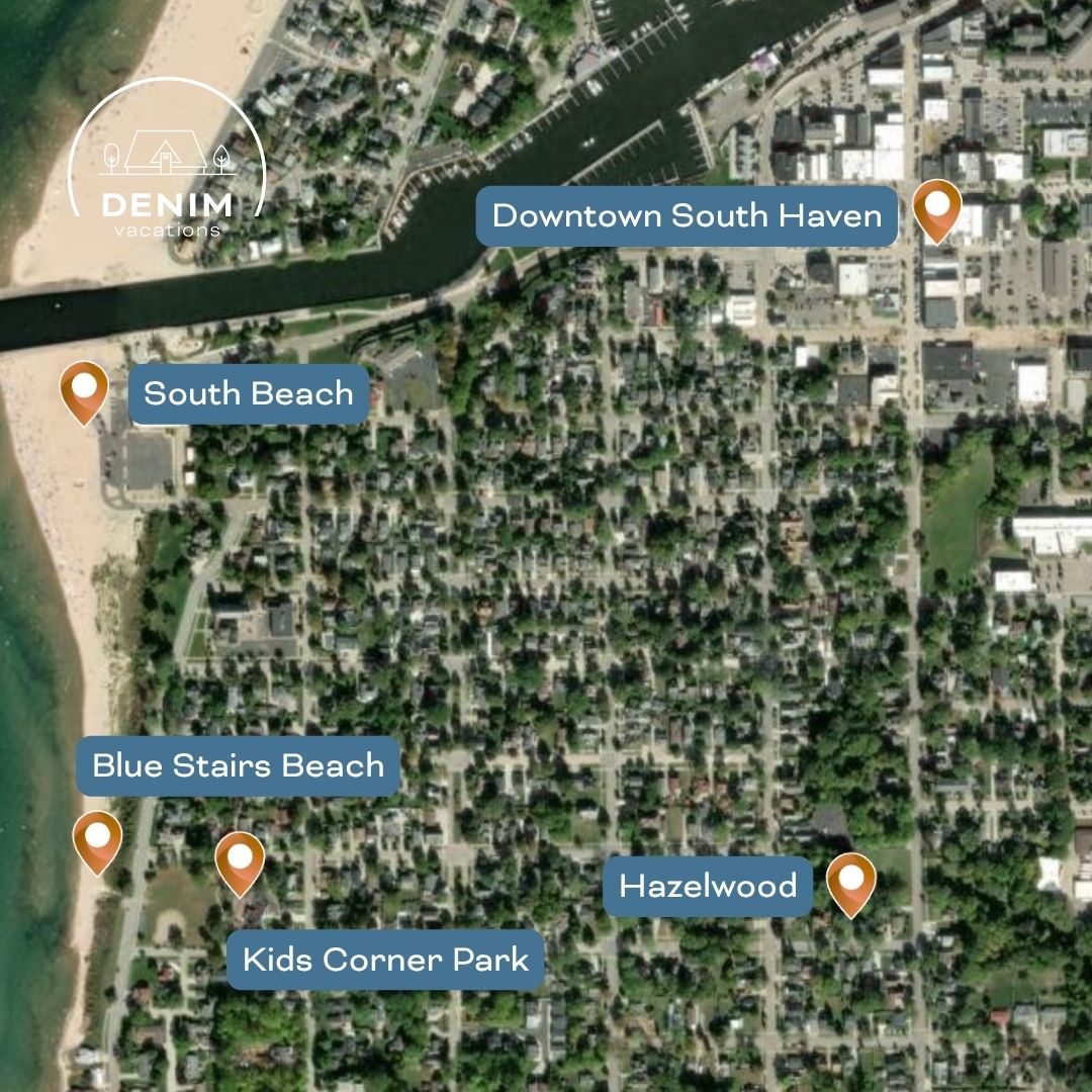 🏖️ Hazelwood — Walk to Beach & Downtown | Family Fun Home w/ Game Room & Firepit Stay close to everything South Haven has to offer at Hazelwood, a bright, modern-cottage retreat perfectly designed for families and friends. This spacious three-bedroom, three-bath home sits just a short walk from South Beach, Blue Stairs Beach, Kids’ Corner Park, and downtown’s shops and restaurants. 🌳 THE SPACE Unwind together after a day on the lake in three inviting living areas: the open living room with sectional sofa and Roku TV, the large dining room with seating for eight, and the garage game room complete with TV, lounge seating, ping-pong, and foosball. In the evenings, gather on the deck or around the firepit in the private fenced backyard for laughter and s’mores. The well-equipped kitchen includes a gas stove, dishwasher, quality cookware, and a coffee maker with both carafe and K-Cup options. Central air conditioning and high-speed Wi-Fi keep everyone comfortable year-round. 🛌 SLEEPING ARRANGEMENTS • Main-floor master suite – King bed + ensuite bath with shower • Bedroom 2 (upstairs) – Queen bed • Bedroom 3 (upstairs) – Two sets of bunk beds (sleeps 4 comfortably) A pack-and-play and extra sleeping mat are provided for families with little ones. Note: the upstairs staircase is steep. 🚿 BATHROOMS & AMENITIES Three bathrooms make getting ready easy: a half bath with laundry on the main floor, the master’s full bath, and another full bath upstairs. Washer/dryer, linens, and bath essentials are provided. 🎯 GAME & OUTDOOR FUN The garage game room is a guest favorite for rainy-day entertainment or evening tournaments. Outside, enjoy the deck with dining table, Weber gas grill, and firepit in a private fenced yard. 🏖️ BEACH & LOCAL ADVENTURE You’re just .5 mile to downtown, .8 mile to South Beach, .5 mile to Blue Stairs Beach, and .4 mile to Kids’ Corner Park. Beach chairs, wagon, toys, umbrella, and sand gear are provided — everything you need for carefree days on Lake Michigan. 🌅 YEAR-ROUND GETAWAY Spend sunny days walking to the beach, cool evenings by the firepit, and cozy winter weekends by the fireplace. Whether you’re planning a family vacation or a friends’ retreat, Hazelwood delivers comfort, fun, and the best South Haven location. 💫 BOOK YOUR STAY Walk to the beach, relax in style, and make lasting memories. Book Hazelwood today — your South Haven getaway awaits!