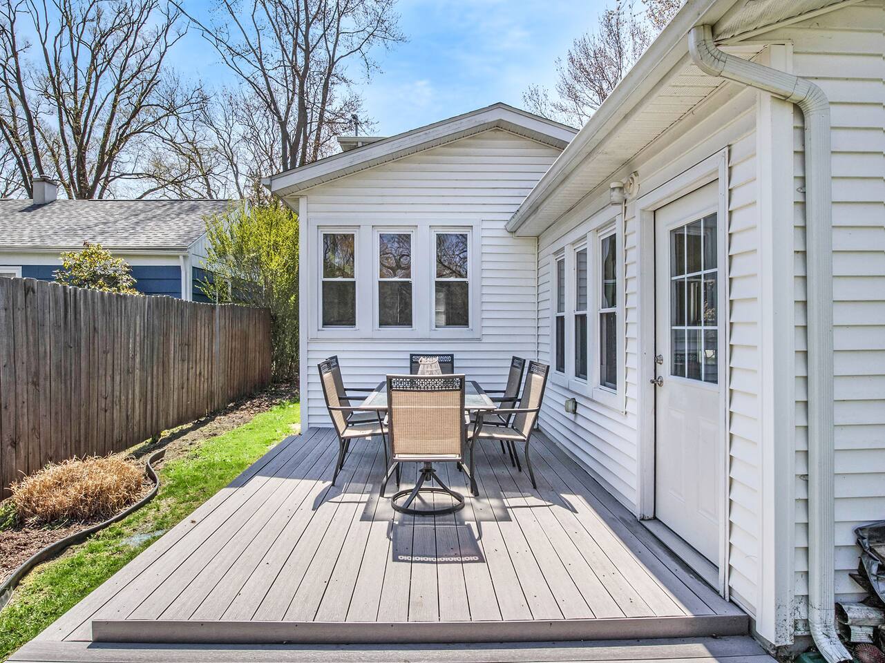 The central location of this house makes for an EASY walk to all the best South Haven attractions. - Downtown (shops, restaurants, bars): .5 mile - South Beach / Lighthouse / Splash Pad: .8 mile - Beach at Blue Stairs: .5 mile - Kids’ Corner Park: .4 mile - North Beach: 1.5 mile Three bedrooms with high quality mattresses and soft, plush linens. -Master Bedroom (main floor) - King bed -Bedroom 2 (upstairs) - Queen bed -Bedroom 3 (upstairs) - Two sets of bunk beds **PLEASE NOTE: staircase to upstairs is rather steep** -Additional sleeping mat and blanket/pillow located in walk-in closet -Pack and play also provided (please bring your own sheet) Well-Appointed Kitchen -Dishwasher, gas stove -Quality cookware and plenty of dishes/flatware -Coffee maker with carafe and K-cup. Spacious Living Room -Large, comfortable sectional sofa for relaxing -Roku smart TV - Gas fireplace to cozy up with in the cooler months Dining Room -With large table easily capable of seating 8 -Booster seat also provided Bathroom 1 - Main Floor -Half bath with laundry Bathroom 2 - Main floor -Full bath with shower, connected to master bedroom Bathroom 2 - Upstairs -Full bath with shower Game Room -Complete with foosball table, ping pong table, and smart TV with seating area. -Gas grill also located in the garage (please pull grill outside to use) -Garage is NOT heated. There is only a small wall-mounted heater to take the chill off in cool months. Outdoors -Private yard with deck and firepit Beach Gear - Beach chairs - Beach wagon - Sand toys Beach towels are not provided so please bring them along with you. Other things to note We have a selection of games and puzzles for the whole family to enjoy! For families traveling with babies, we have a pack-and-play and booster seat. While we love furry family members, we do not allow pets due to family member allergies.