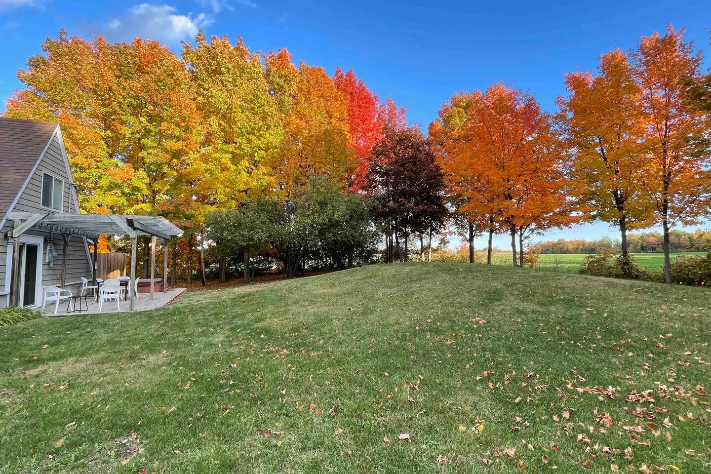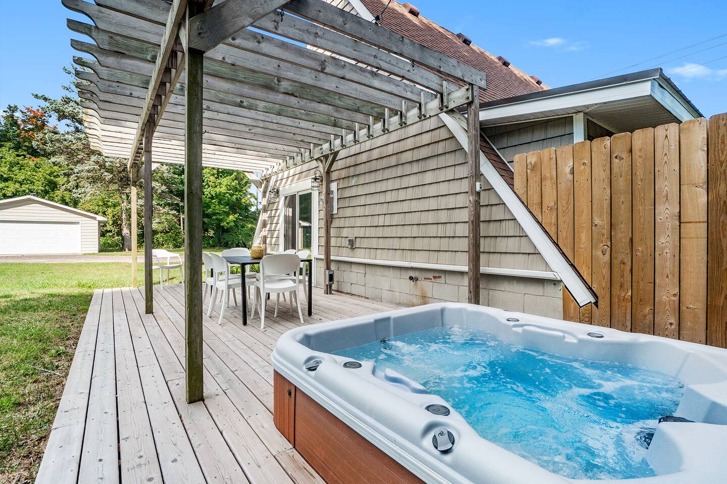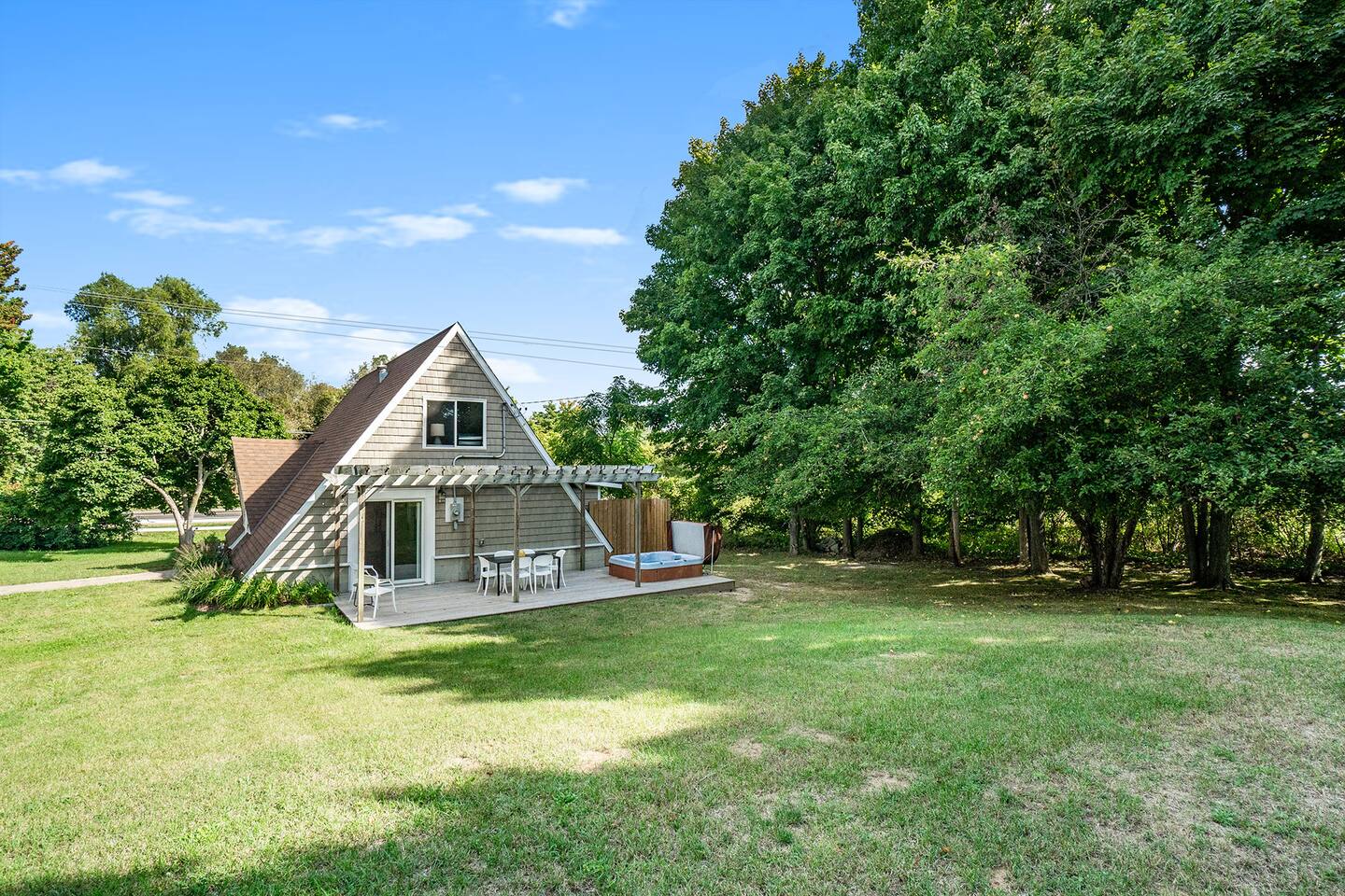 Perfect getaway year round : Spring breaks, summer beach vacations, fall color tours and a snow lodge in winter. The central location of this house makes for an easy drive to all the best attractions the area has to offer. Nearby Attractions: - 5 miles to Saugatuck/Douglas - 7 miles to downtown Fennville - 2 miles to Lake Michigan (Pier Cove Park and West Side Parks) - 6 miles to Oval Beach - 4 miles to Fenn Valley Winery - 3.5 miles to Virtue Cider - 5 miles to Crane’s Orchards - 15 miles to South Haven (south) and Holland (north) But you don't have to go anywhere to completely enjoy yourself. The Applewood Lodge is well appointed with everything you need to relax and unwind. Enjoy the cozy, inviting interior of the A-frame or lounge outdoors in the fresh air. Either way, you're sure to slow down and breathe a little easier during your stay. Here's what you can look forward to: INDOORS Three bedrooms with high quality mattresses and soft, plush linens. -Master Bedroom (Main floor) - King bed -Bedroom 2 (Upstairs) - Queen bed -Bedroom 3 (Upstairs) - Full bed, twin bed, folding sleeper chair -Pack and play also provided Well-Appointed Kitchen/Dining Area -Dishwasher, stove, fridge -Quality cookware and plenty of dishes/flatware -Coffee maker with carafe and K-cup. Coffee and tea provided. -With large table and seating for seating 8 -High chair also available Spacious Living Room -Large, comfortable sofa for relaxing -Roku smart TV Master Bathroom - Main Floor -Connected to master bedroom -Spacious walk-in tiled shower Bathroom 2 - Main Floor (Please note that both bathrooms are located on the main floor. There is not a bathroom upstairs.) -Tub/shower combo, perfect for bathing the little ones after the beach Laundry -Washer and dryer located on the main floor -Laundry pods provided High speed WiFi (120 Mbps) OUTDOORS -Relax in the hammock or gather around the firepit after a day of exploring the area. -Watch the wildlife come to enjoy the fruit on the apple, peach and cherry trees. -Play a game of corn hole and bocce ball in the large yard. Game Room Garage -Enjoy the air hockey table, sofa and TV in the garage Deck -The perfect place to enjoy your morning coffee or read a book while overlooking the spacious, wooded backyard. -Enjoy your meals or play cards on the patio dining table. Hot Tub -Five person hot tub is the ideal place to relax and unwind In the garage you’ll find gear for your stay, including: -Gas grill -Six beach chairs -Corn hole and bocce ball **Beach towels are not provided so please bring them along with you.** Other things to note -We have a selection of games and puzzles for the whole family to enjoy. -For families traveling with babies, we have a pack-and-play and high chair available. The hot tub should not be used by children without adults present. The hot tub constitutes a risk and you agree to hold Denim Vacations and homeowners harmless from any incident related to use of the hot tub when you book with us. While we love furry family members, we do not allow pets due to family member allergies.