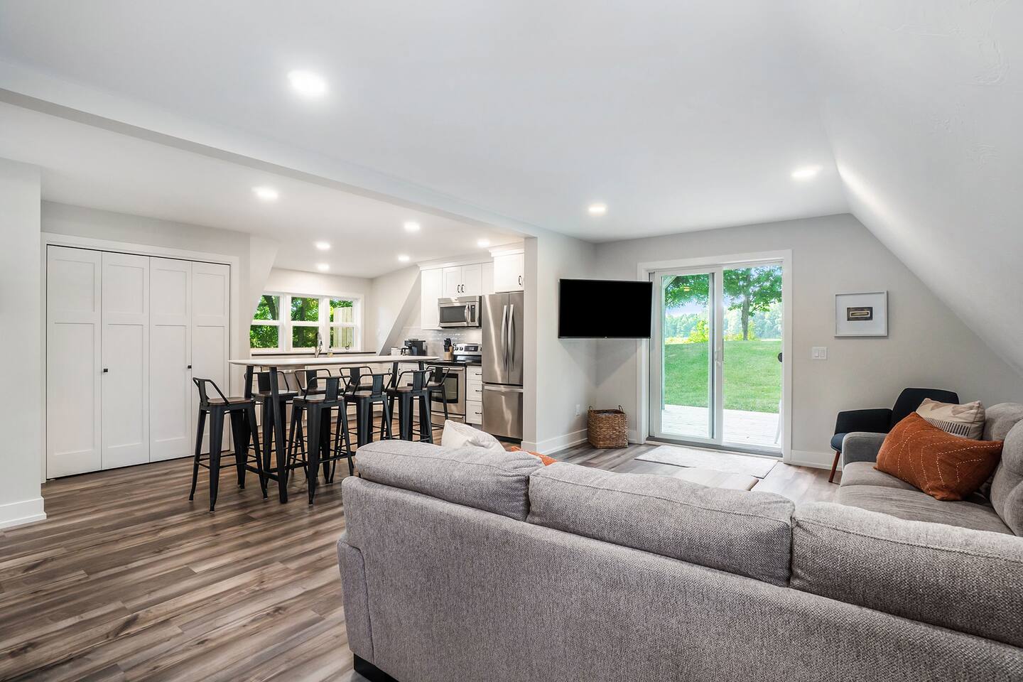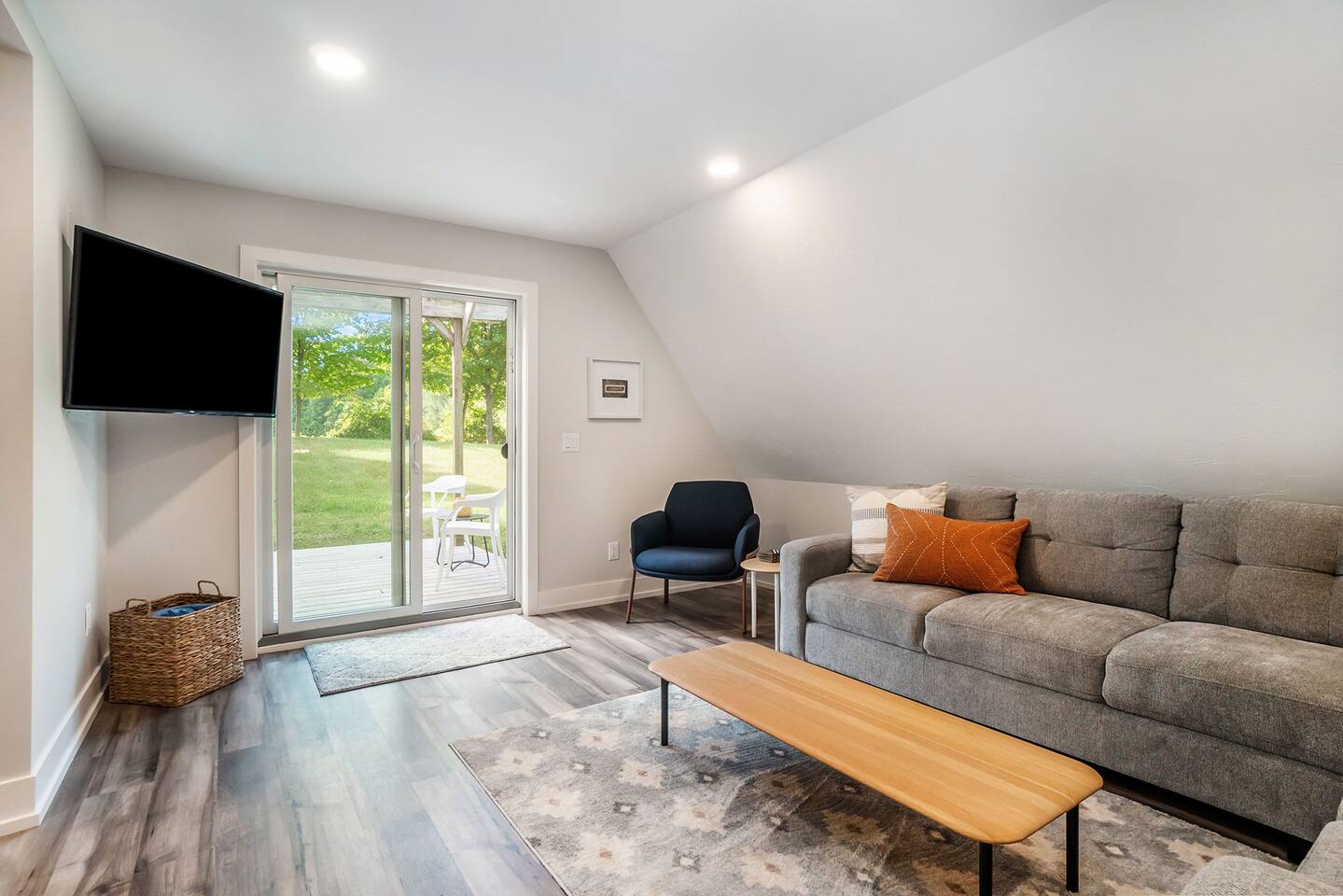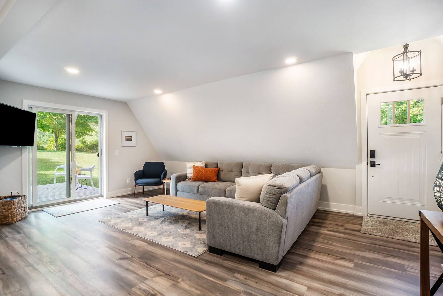 Perfect getaway year round : Spring breaks, summer beach vacations, fall color tours and a snow lodge in winter. The central location of this house makes for an easy drive to all the best attractions the area has to offer. Nearby Attractions: - 5 miles to Saugatuck/Douglas - 7 miles to downtown Fennville - 2 miles to Lake Michigan (Pier Cove Park and West Side Parks) - 6 miles to Oval Beach - 4 miles to Fenn Valley Winery - 3.5 miles to Virtue Cider - 5 miles to Crane’s Orchards - 15 miles to South Haven (south) and Holland (north) But you don't have to go anywhere to completely enjoy yourself. The Applewood Lodge is well appointed with everything you need to relax and unwind. Enjoy the cozy, inviting interior of the A-frame or lounge outdoors in the fresh air. Either way, you're sure to slow down and breathe a little easier during your stay. Here's what you can look forward to: INDOORS Three bedrooms with high quality mattresses and soft, plush linens. -Master Bedroom (Main floor) - King bed -Bedroom 2 (Upstairs) - Queen bed -Bedroom 3 (Upstairs) - Full bed, twin bed, folding sleeper chair -Pack and play also provided Well-Appointed Kitchen/Dining Area -Dishwasher, stove, fridge -Quality cookware and plenty of dishes/flatware -Coffee maker with carafe and K-cup. Coffee and tea provided. -With large table and seating for seating 8 -High chair also available Spacious Living Room -Large, comfortable sofa for relaxing -Roku smart TV Master Bathroom - Main Floor -Connected to master bedroom -Spacious walk-in tiled shower Bathroom 2 - Main Floor (Please note that both bathrooms are located on the main floor. There is not a bathroom upstairs.) -Tub/shower combo, perfect for bathing the little ones after the beach Laundry -Washer and dryer located on the main floor -Laundry pods provided High speed WiFi (120 Mbps) OUTDOORS -Relax in the hammock or gather around the firepit after a day of exploring the area. -Watch the wildlife come to enjoy the fruit on the apple, peach and cherry trees. -Play a game of corn hole and bocce ball in the large yard. Game Room Garage -Enjoy the air hockey table, sofa and TV in the garage Deck -The perfect place to enjoy your morning coffee or read a book while overlooking the spacious, wooded backyard. -Enjoy your meals or play cards on the patio dining table. Hot Tub -Five person hot tub is the ideal place to relax and unwind In the garage you’ll find gear for your stay, including: -Gas grill -Six beach chairs -Corn hole and bocce ball **Beach towels are not provided so please bring them along with you.** Other things to note -We have a selection of games and puzzles for the whole family to enjoy. -For families traveling with babies, we have a pack-and-play and high chair available. The hot tub should not be used by children without adults present. The hot tub constitutes a risk and you agree to hold Denim Vacations and homeowners harmless from any incident related to use of the hot tub when you book with us. While we love furry family members, we do not allow pets due to family member allergies.