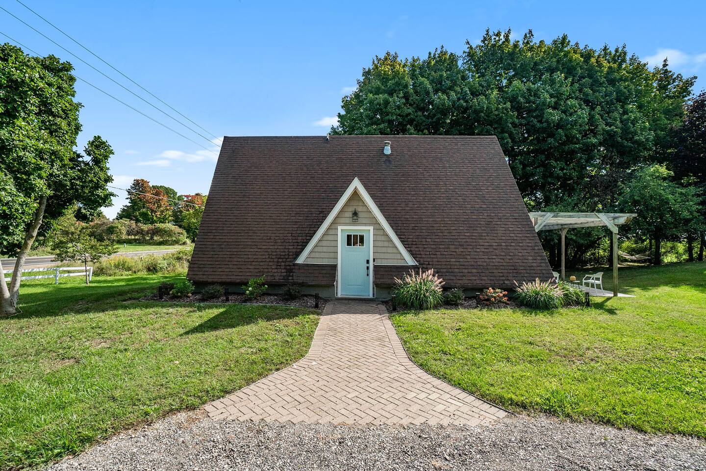 Escape to Applewood Lodge — a private A-frame retreat just 3 minutes from Lake Michigan’s Pier Cove Beach! Relax in the bubbling hot tub under twinkle lights, gather by the firepit with friends, or unwind in the game-room garage. Nestled on a secluded wooded acre near Saugatuck, Douglas & Holland, this spacious cabin is perfect for couples or groups seeking comfort, style, and total relaxation year-round!