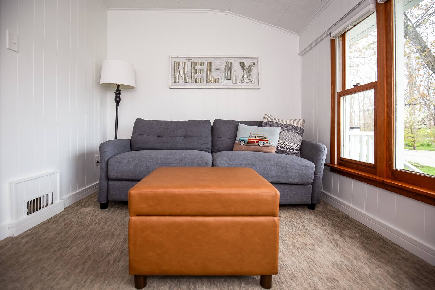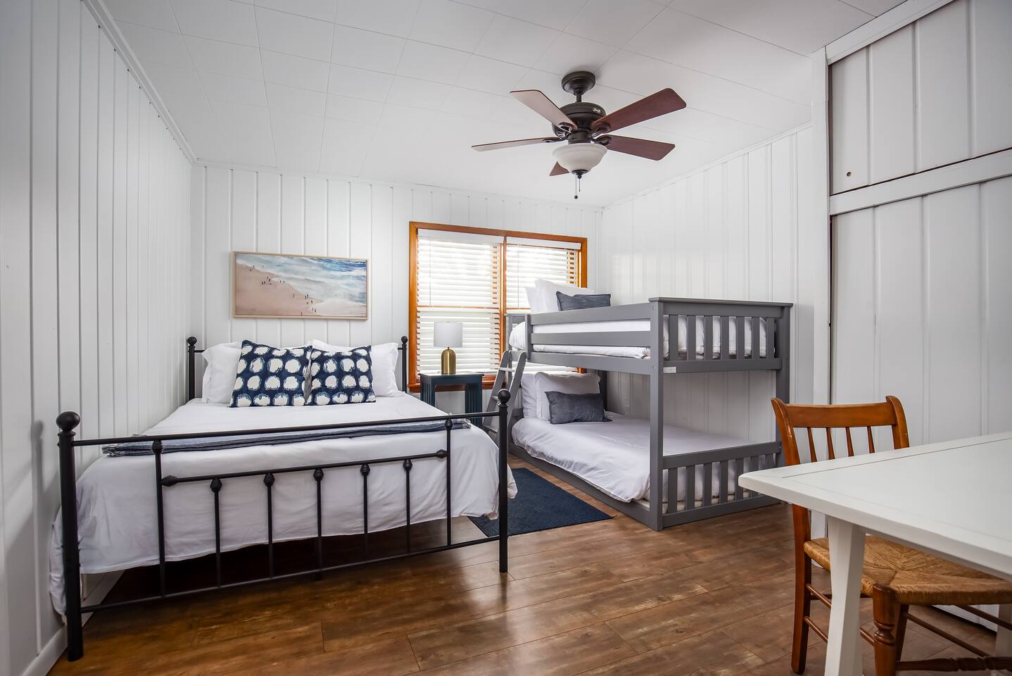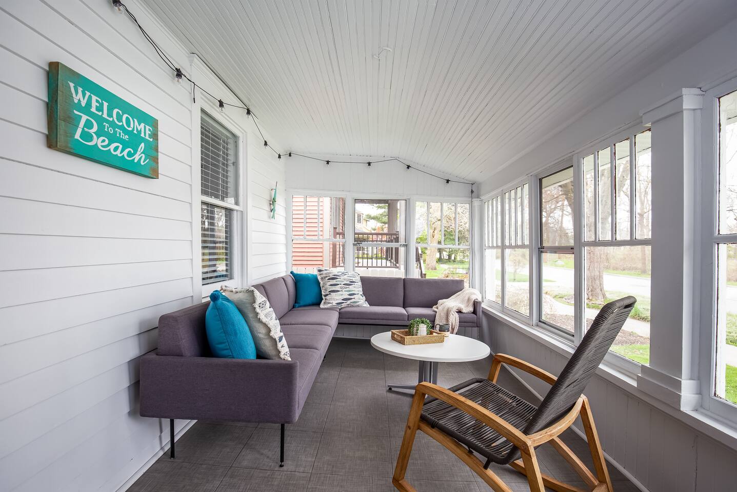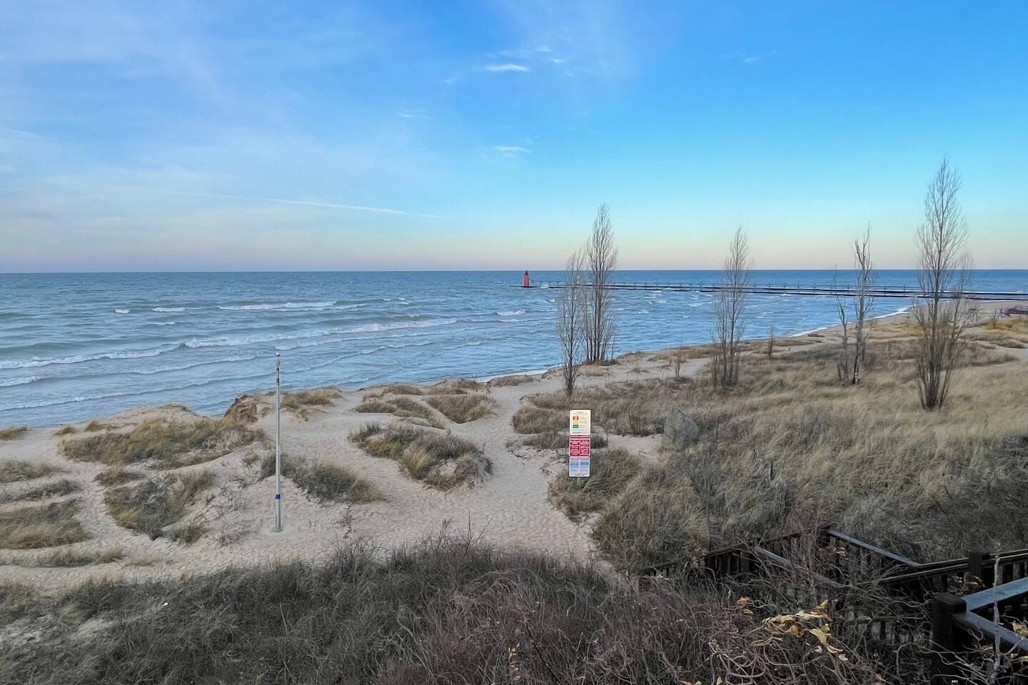 Location truly doesn’t get any better than this! -Steps away from Kids Corner Park -One block to the Blue Stairs beach on Lake Michigan -A short stroll to South Beach, the pier and the splashpad -Ten minute walk to restaurants, shops and bars Sunny enclosed porch - With large sofa - the perfect place to enjoy your morning coffee or read a book Three bedrooms with high quality mattresses and soft, plush linens -Master Bedroom - Queen -Bedroom 2 - Queen and twin bunks (capable of supporting 350lbs per bunk. Total of 700lbs) -Bedroom 3 - Twin bunks (Also supports 700 lbs) -Pack and play also available Well appointed kitchen -Stainless steel dishwasher, gas stove, refrigerator, microwave -Plenty of cookware, cooking utensils, flatware and dishes, including children's dishes -Ample counter top and cabinet space -Coffee maker (carafe and K cup), crockpot, toaster Spacious living room -Large, comfortable sofa for relaxing -Roku smart TV and DVD player with an assortment of movies - Electric fireplace to cozy up with in the cooler months Dining room -Large table with seating for 8 Den/office -With a desk, office chair and sliding door -High speed wifi Two full bathrooms -Bathroom 1 - Tub/shower combo, perfect for bathing the little ones after the beach -Bathroom 2 - *newly added in 2024*. Full bathroom with tiled shower. -Bath linens and toiletries provided Outdoors -Deck with large patio table and chairs -Weber gas grill -Fire pit When you are ready to hit the beach, you’ll find several chairs, beach toys and a beach wagon in the garage to make your day in the sun perfect. Beach towels are not provided so please bring them along with you.